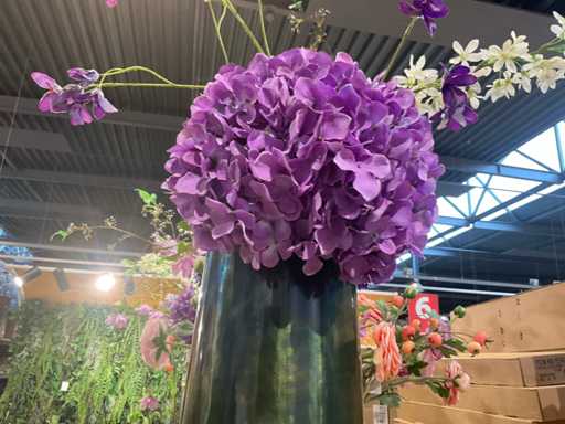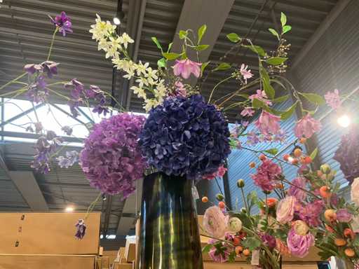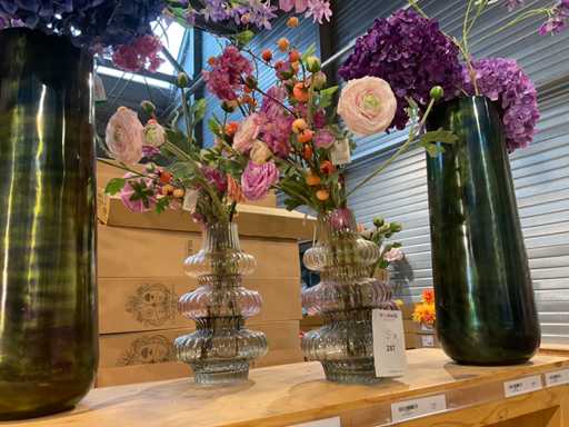 2 x vază de 54 cm, 2 x vază de 32 cm și 1 x vază de 20 cm, inclusiv flori artificiale, printre altele. Mătase