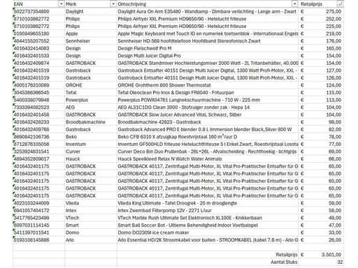 Este vorba despre un lot de produse returnate cu brandul A de la un mare retailer online. Lotul este format din diverse categorii de produse. Număr de piese: 32. Valoare de retail: €3501,- Neverificat: operațiune necunoscută (mix de