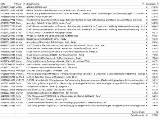 Este vorba despre un lot de produse returnate cu brandul A de la un mare retailer online. Lotul este format din diverse categorii de produse. Număr de piese: 32. Valoare de retail: €2708,- Neverificat: operațiune necunoscută (mix de