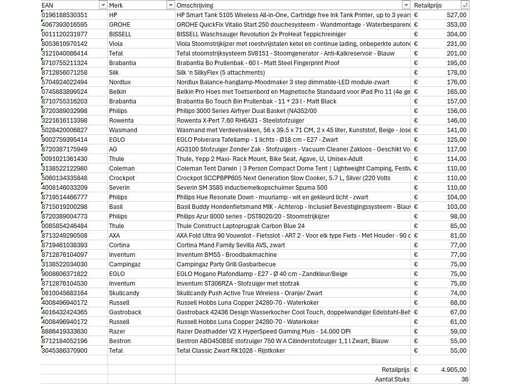 Este vorba despre un lot de produse returnate cu brandul A de la un mare retailer online. Lotul este format din diverse categorii de produse. Număr de piese: 36. Valoare de retail: €4905,- Neverificat: operațiune necunoscută (mix de