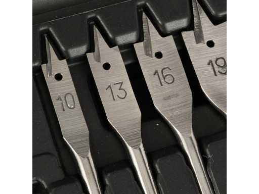 - 4x spirală de burghiu pentru lemn: 10, 13, 16 și 19 mm