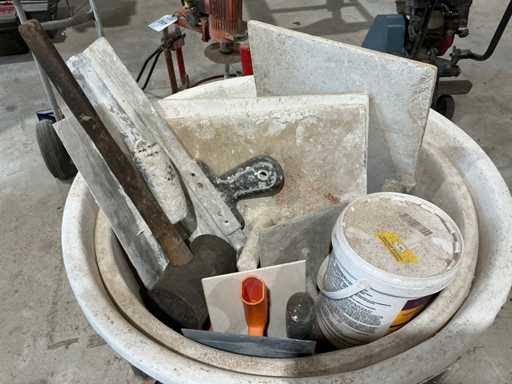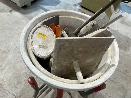 Estoniană de la 2x cuvă de mortar, diverse unelte de mână și 2x cărucior de cadă