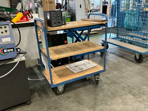 mobil; cadru de oțel profilat; echipat cu 3 rafturi laminate; mâner de împingere; Dimensiuni 1000x500x1100 mm