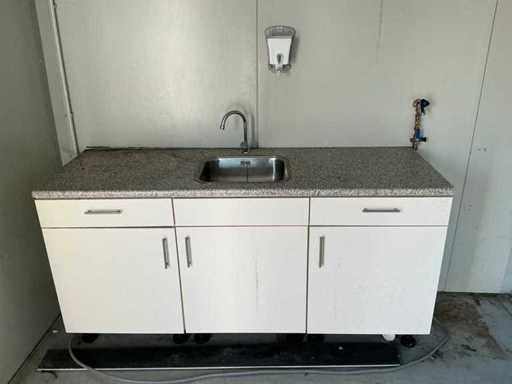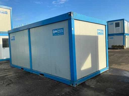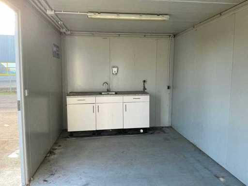 1x ușă de wicket (avariată); încălzitor electric; iluminat; Aer condiționat Maxa; 3x priză; conexiunea 400 Volți 32 Amperi; 1 bărbat, 1 fată; sloturi pentru stivuitoare; 1x fereastră cu obloane rulante; Unitate de bucătărie cu chiuvetă