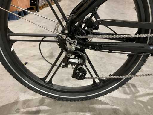 presta; chei pentru ușă și baterie; raza de acțiune 50 km; 110 Nm cuplu; Viteze cu viteze Shimano Altus cu 8 trepte; Iluminatul automat Se aprinde la amurg; Capacitate a bateriei de 19,6 Ah; Testat TÜV Calitatea testată în Germania; Colorat cu pulbere, negru; Motor electric 250 Wați, motor central Ananda 110 Nm; Baterie 19,6 Ah, 36 Volți, Samsung/LG; Anvelopă 24" x 2,15 anvelope față, 26" x 2,15 anvelope spate, bandă reflectorizantă rezistentă la pană; Universală pentru șa, cu eliberare rapidă pentru ajustarea înălțimii șeii; Ghidon reglabil 115-130 cm, ghidon căptușit; neutilizat în plastic