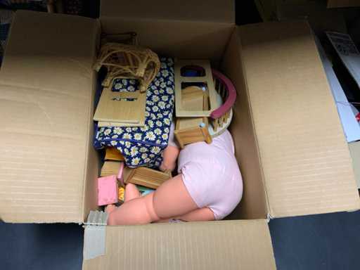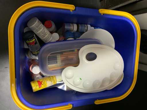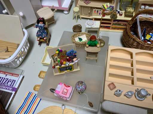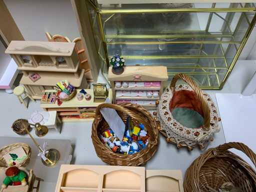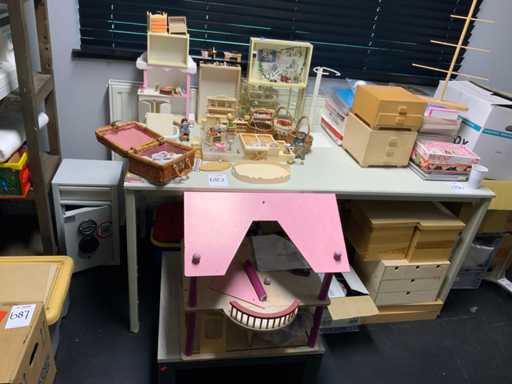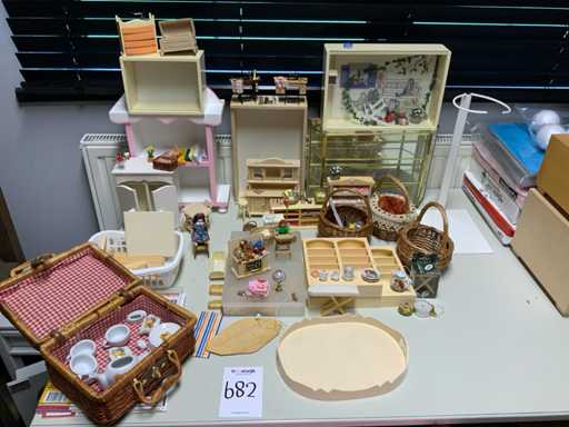 Constă în mobilier miniatural de casă de păpuși, vase de vopsea și suport pentru păpuși