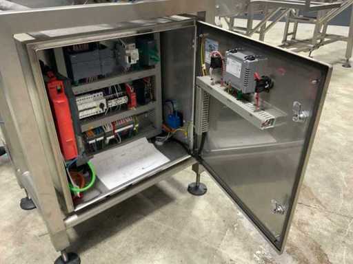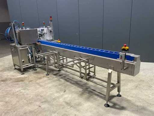 Lungimea benzii transportoare Bodijn 2023: 4650mm. Compartimentele benzii transportoare de admisie: 90 x 90mm. Echipat cu 2 mașini de etichetare GoodTech 2023 tip: A391V020-2.