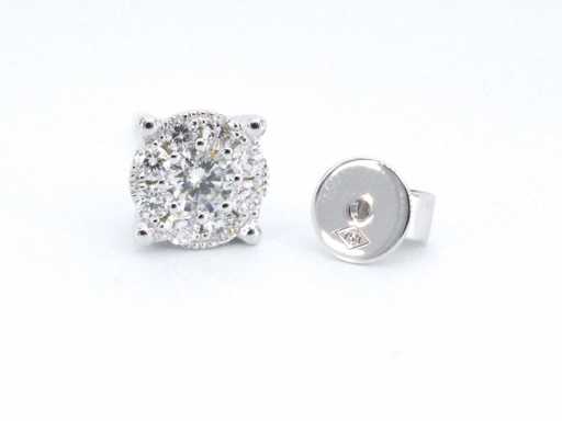 Diamant: natural; Tăietură: Tăietură genială; Greutate (carate): 0,67 carate; Culoare: F-G; Puritate: SUA; Calitatea tăieturii: Foarte frumoasă; Bijuterie: cercei; Greutate: 2 grame; Material: aur 18K (750); Starea: Nouă; Ambalare: Cutie de bijuterii de lux; Explicație: Calitatea a fost preluată din raportul aferent produsului. Evaluarea este o evaluare a unui comerciant certificat de diamante, bazată pe prețurile pentru consumatori; Preț pentru consumatori: € 6.353