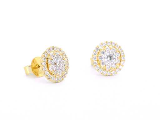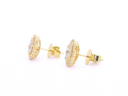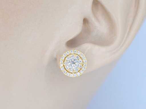 Cercei de aur pentru anturaj montați cu 60 de diamante tăiate cu brio
