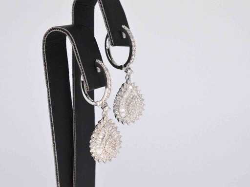 Diamant: natural; Tăietură: Strălucitor și tăiat cu baghetă; Greutate (carate): 1,50 carate; Culoare: F-G; Puritate: SI-P; Calitatea tăieturii: Foarte frumoasă; Bijuterie: cercei; Greutate: 5,5 uncii; Dimensiuni/lungime: 30 mm; Material: 14 carate (585); Starea: Nouă; Ambalare: Cutie de bijuterii de lux; Explicație: Calitatea a fost preluată din raportul aferent produsului. Evaluarea este o evaluare a unui comerciant certificat de diamante, bazată pe prețurile pentru consumatori; Preț pentru consumatori: 6.825 €