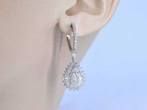Cercei în formă de picătură din aur alb cu diamante