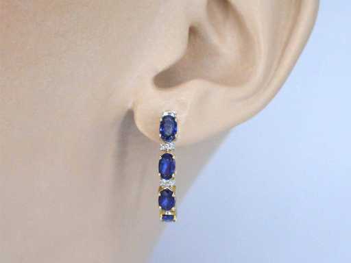 Diamant: Natural; Tăietură: Tăietură genială; Greutate (carate): 0,15 carate; Culoare: F-G; Puritate: SI-P; Calitatea tăieturii: Foarte frumoasă; Piatră prețioasă: Safir; Tăietură: Croială ovală; Greutate (carate): 2,50 carate; Bijuterie: cercei; Greutate: 2,6 uncii; Material: 14 carate (585); Starea: Nouă; Ambalare: Cutie de bijuterii de lux; Explicație: Calitatea a fost preluată din raportul aferent produsului. Evaluarea este o evaluare a unui comerciant certificat de diamante, bazată pe prețurile pentru consumatori; Preț pentru consumatori: € 2.275