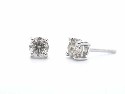 Cercei solitari din aur alb cu diamante tăiate cu brio