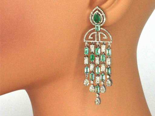 diamante Diamant: diamante naturale reale; Greutate (carate): 4,00 carate; Puritate: Cu incluziuni naturale; Piatră prețioasă: Smaralde naturale; Greutate (carate): 7,00 carate; Culoare: Verde; Puritate: Incluziuni naturale mate; Bijuterie: cercei; Greutate: 20 de grame; Material: Aur cu argint sterling de înaltă calitate; Condiție: Vintage; Ambalare: cutie de bijuterii sau cutie de catifea; Explicație: Calitatea a fost preluată din raportul aferent produsului. Evaluarea este o evaluare a unui comerciant certificat de diamante, bazată pe prețurile pentru consumatori; Informații suplimentare: Aceasta este o bijuterie realizată manual. Preț pentru consumatori: 7.040 €