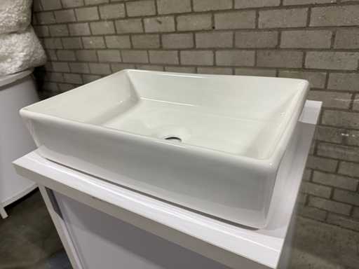 Chiuvetă dreptunghiulară elegantă, cu un aspect modern și minimalist. Dimensiunea compactă de 46 x 34 cm și înălțimea de 15,5 cm fac ca această chiuvetă să fie ideală pentru băi sau toalete mai mici. Finisajul alb lucios oferă un aspect proaspăt și atemporal. Datorită orificiului de robinet de 4 cm, este potrivit pentru majoritatea robinetelor montate la suprafață. Un model stilat și practic pentru orice sistem de chiuvetă.