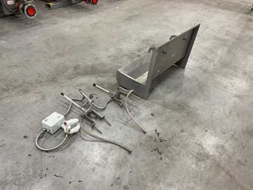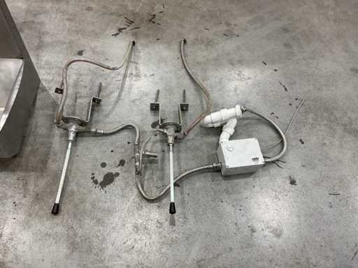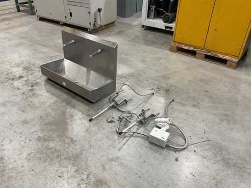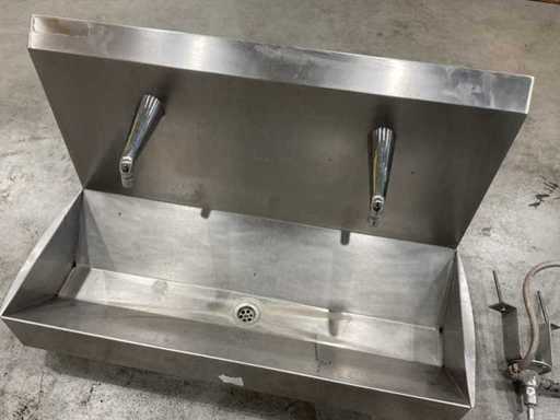 Chiuvetă din oțel inoxidabil cu robinete acționate la genunchi.