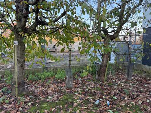 inclusiv copaci bătrâni, inclusiv 4x Prunus Schneiders; 4x Prunus Biggareau Napoleon; 4x Prunus Hedelfinger, 4x Prunus Sunburst; 4x Prunus Double Meikers înălțime până la 6 metri. Notă: săpând cumpărătorii ei înșiși și închizând gropile cu sol curat.