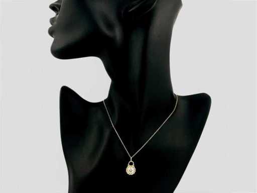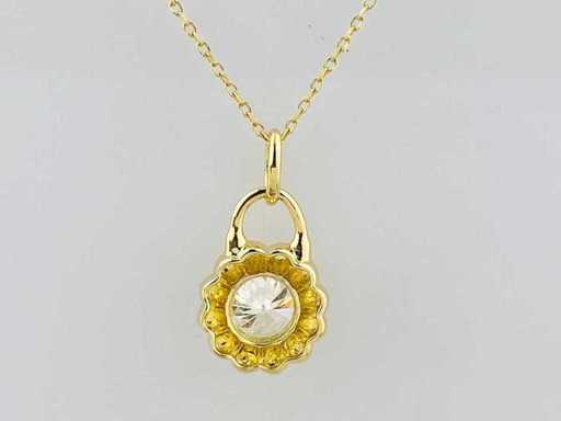 Colier de aur galben de 14 KT cu pandantiv cu diamant crescut în laborator