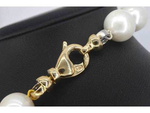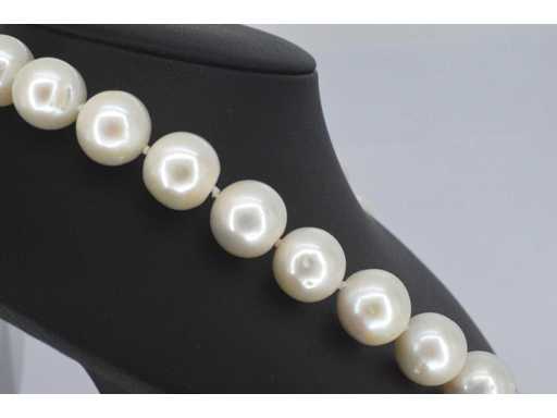 Perlă: Perle naturale; Număr de piese: 32 de piese; Culoare: Alb; Dimensiune: 12 - 14,5 mm; Strălucitor: lucios; Bijuterie: Colier; Greutate: 99 grame; Dimensiuni/lungime: 46,5 cm; Material: aur 14K (585); Starea: Nouă; Ambalare: Cutie de bijuterii de lux; Explicație: Calitatea a fost preluată din raportul aferent produsului. Evaluarea este o evaluare a unui comerciant certificat de diamante, bazată pe prețurile pentru consumatori; Preț de consum: € 10.150