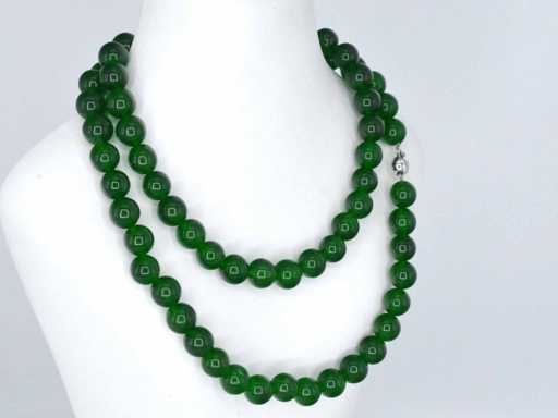 Diamant: Natural; Cantitate: 6 piese; Tăietură: Tăietură genială; Greutate (carate): 0,10 carate; Culoare: F-G; Puritate: SUA; Calitatea grind-ului: Foarte bună; Piatră prețioasă: Jad; Tăietură: Rotundă; Culoare: verde intens; Dimensiuni: 10 mm; Calitate: Frumos lucios; Bijuterie: Collier; Greutate: aprox. 80 de grame; Dimensiuni/lungime: aprox. 70 cm; Material: aur 14k (585); Starea: Nouă; Ambalare: Cutie de bijuterii de lux; Explicație: Calitatea a fost preluată din raportul aferent produsului. Evaluarea este o evaluare a unui comerciant certificat de diamante, bazată pe prețurile pentru consumatori; Informații suplimentare: Agrafă: aur 14K (585) cu diamante; Preț pentru consumatori: € 1.940,-