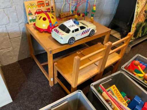 Masă cu scaune și 3 cutii de plastic