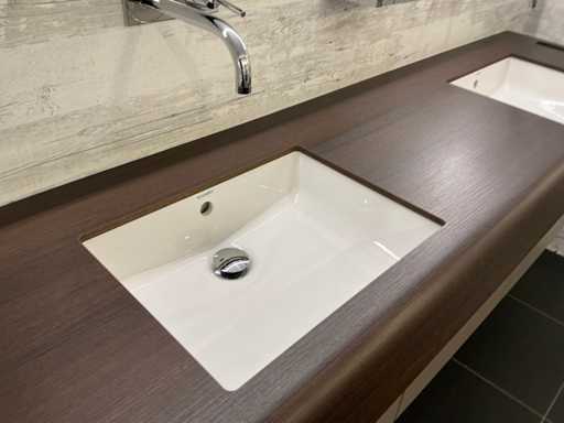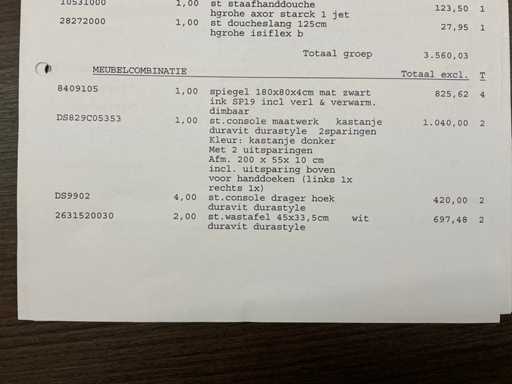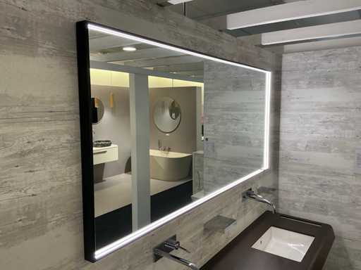 Constă dintr-o oglindă 180x80x4 negru mat cu încălzire și iluminare reglabilă, dulap personalizat întunecat (2 îndoituri) cu 2 decupaje (200x55x10cm), 2 chiuvete 45x33,5cm, 2x dulap On Basalt (100x44cm și 150x44cm), 2x set de instalare mixer de perete Hansgröhe fără piesă încorporată.