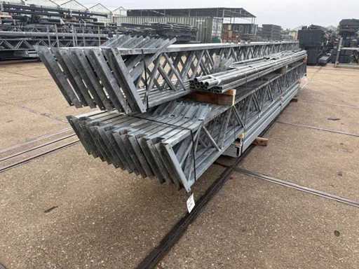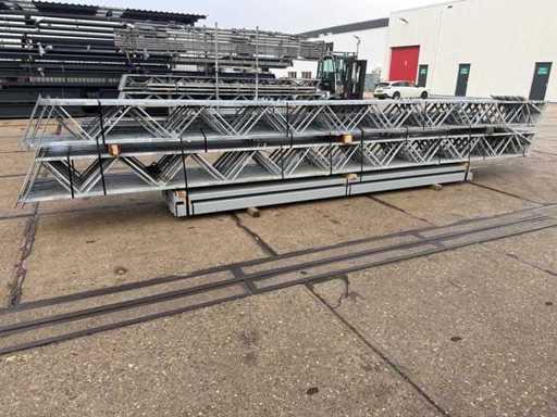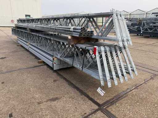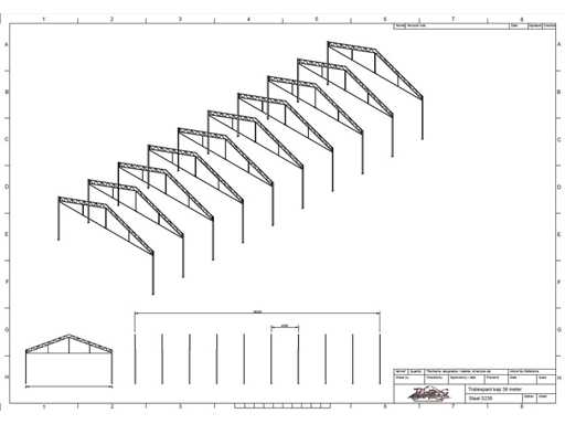 Deschiderea tiei de direcție între grinzi; ferme de casă de 4000mm; secțiune de cutie ca montante verticale și grinzi de grilaj; trasul din oțel; desen 3D; înclinarea acoperișului de 25 de grade; 10 seturi de ferme intermediare; echipat cu tije de legătură cu benzi de suspensie; sprijinirea vântului; Parcarea este ordonat gata de transport și trebuie ridicată cu o singură remorci; Lotul este încărcat gratuit cu un stivuitor