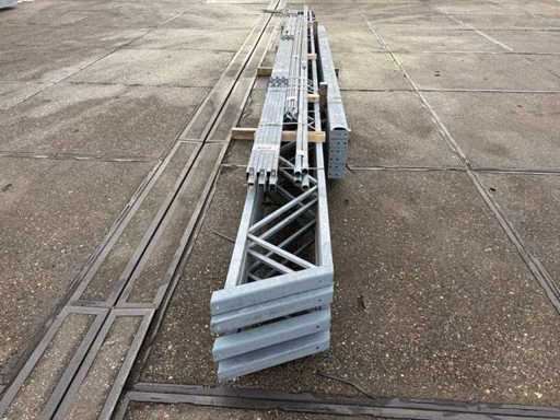 Deschiderea tiei de direcție între grinzi; ferme de casă de 4000mm; secțiune de cutie ca montante verticale și grinzi de grilaj; înclinarea acoperișului de 25 de grade; 3 seturi de ferme intermediare; echipat cu tije de legătură cu benzi de suspensie; întărituri și încrucișate; Parcarea este ordonat gata de transport și trebuie ridicată cu o singură remorci; Lotul este încărcat gratuit cu un stivuitor
