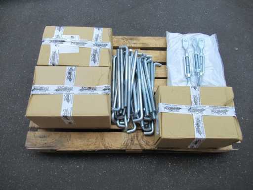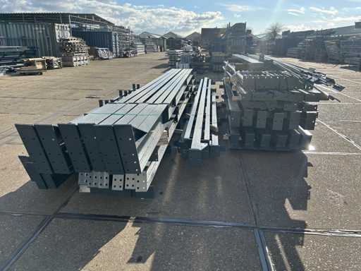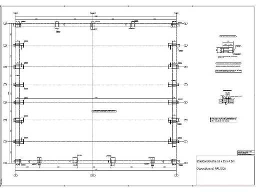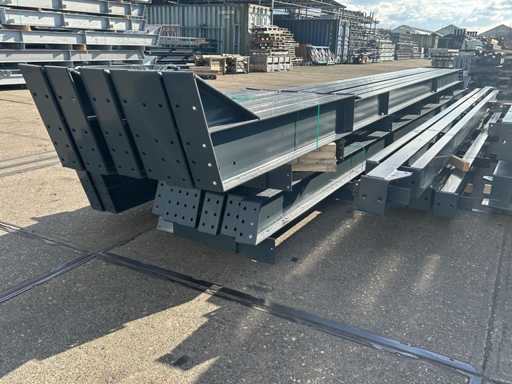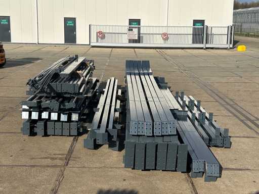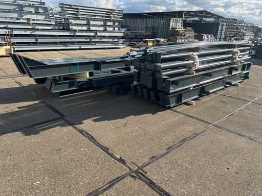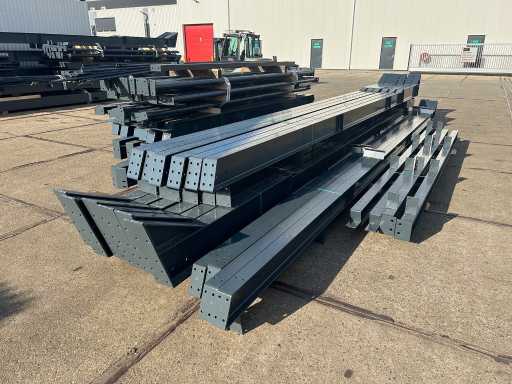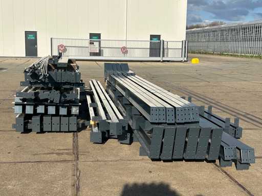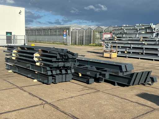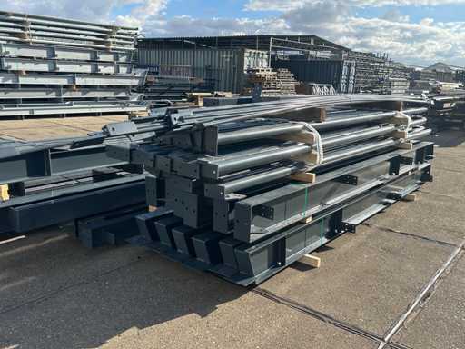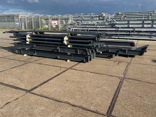 producția olandeză; deschidere liberă; ferme C.O.H. 5000mm; calcule de oțel; desene din oțel; desene de asamblare; planul ancorei; oțelul numerotat conform planului de asamblare; panta acoperișului de 20 de grade; 6 seturi de ferme intermediare IPE 270/220; 2 seturi de ferme IPE 180 la capăt cu stâlpi de vânt, dintre care un set este echipat cu o scufundare pentru ușă; echipată cu tuburi de presiune; sprijinirea vântului; buze purlin; piulițe și șuruburi; ancore de descărcare; construcție din oțel conform standardului de produs EN1090 (certificat disponibil după achiziție); Parcarea este ordonat gata de transport și trebuie ridicată cu o singură remorci; Lotul este încărcat gratuit cu un stivuitor