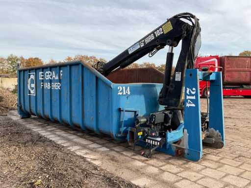 echipat cu: macara de încărcare Hiab 102-2 (3900 kg, 14500 mm, an de construcție 1999), container de 20,4 m3 (lungime 5000 mm, înălțime 1750, lățime 2400), cârlig de ridicare, sanie de containere,