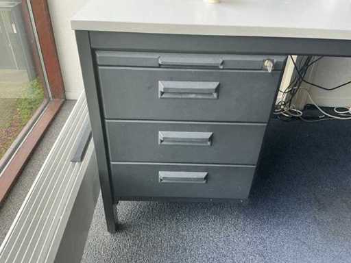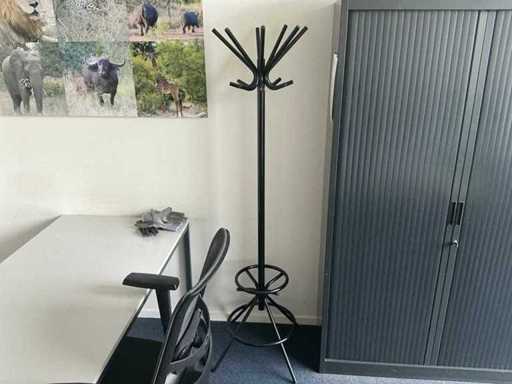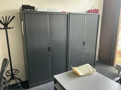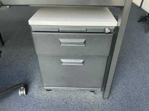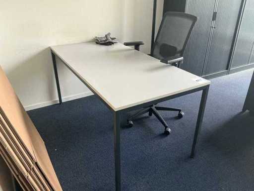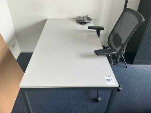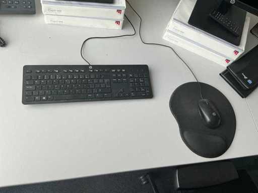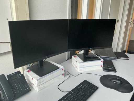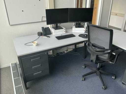 Lotul constă într-un birou de 200x240cm, 1 masă de 160x80cm, 2 scaune de birou, 1 cuier, 2 dulapuri de dosare de 120x43x195cm, 2x monitor HP P24f cu stație de andocare usb-c, tastatură și mouse.