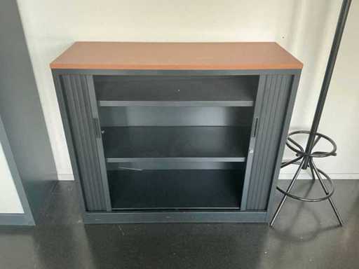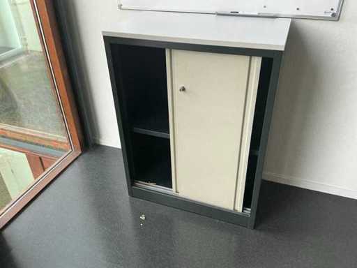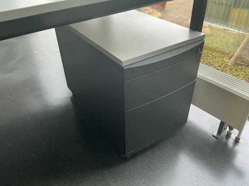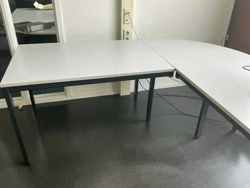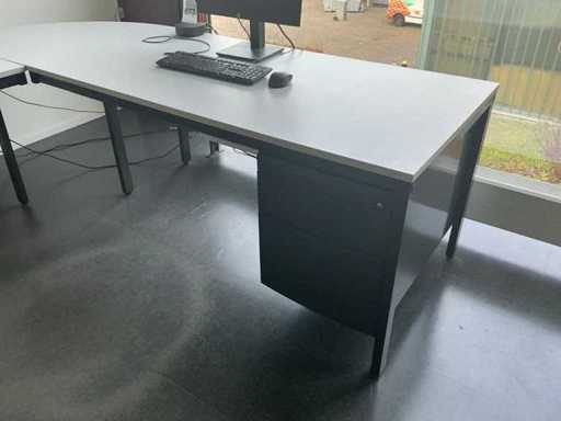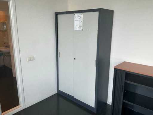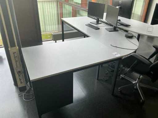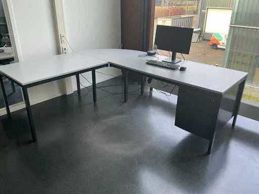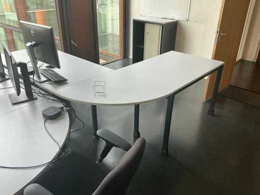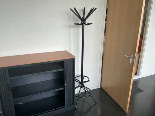 3x birou de colț 240x200cm, 1 scaun de birou, 1 sertare mobilă, 1 dulap de dosare 100x32x195cm, 1 dulap de dosare 120x45x105cm, 1 dulap cu ușă glisantă 120x45x195cm, 1 suport pentru haine, 1x dulap 81x45x105cm, 1x tablă albă 120x90cm