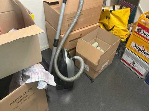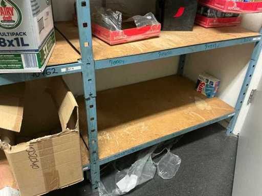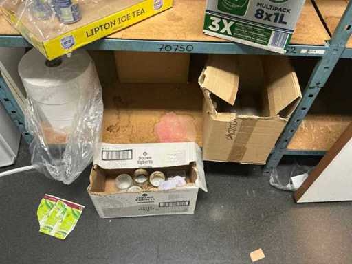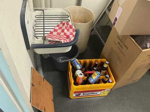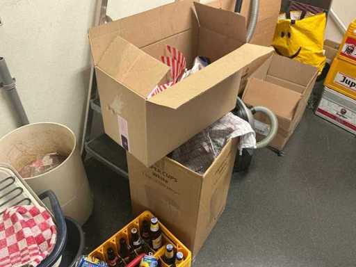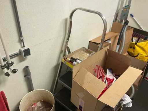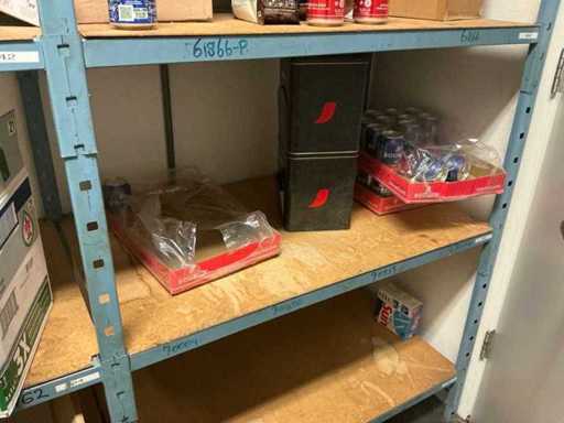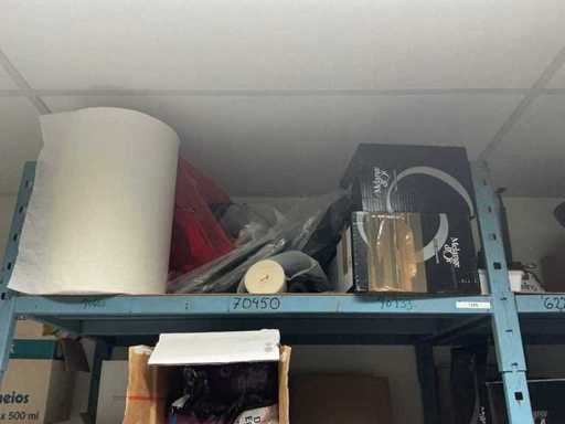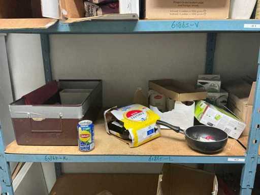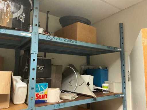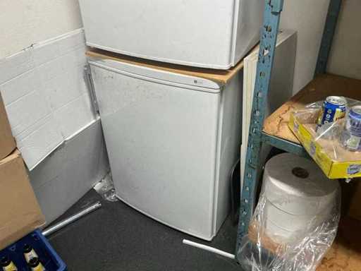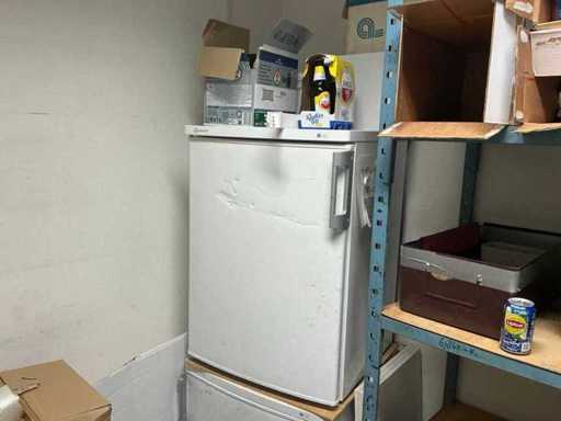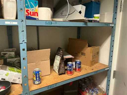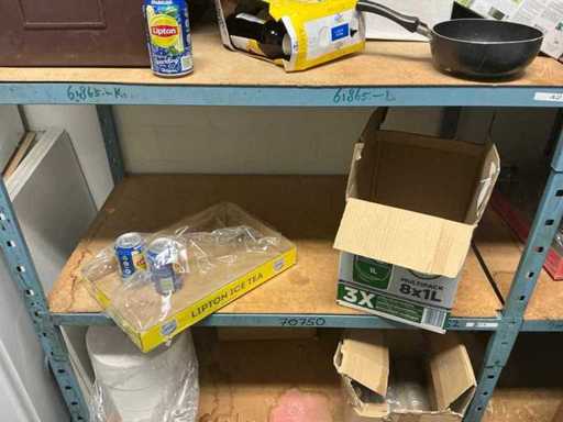 2 frigidere, raft cu diverse produse de curățenie, consumabile etc