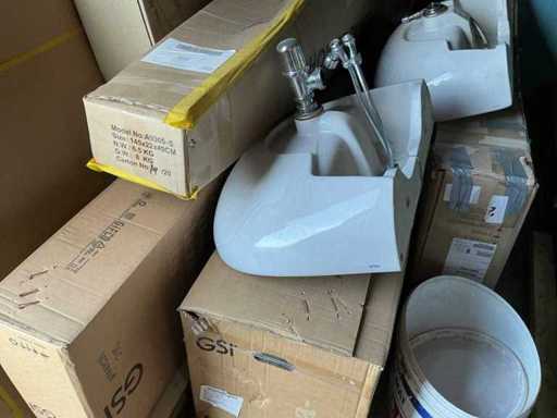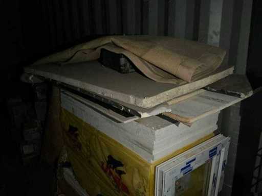 Constând din: diverse mobilier de baie, toalete, diverse lichide, butoaie, cazan Vaillant, tun cu aer cald, aspirator, cabluri, frânghii, tăvi de duș, lână de piatră etc.