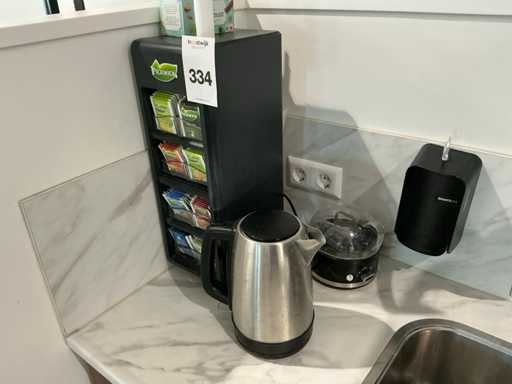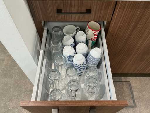 Fără aparatele încorporate și aparatul de cafea cu tăvi de zahăr și lapte.