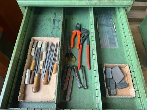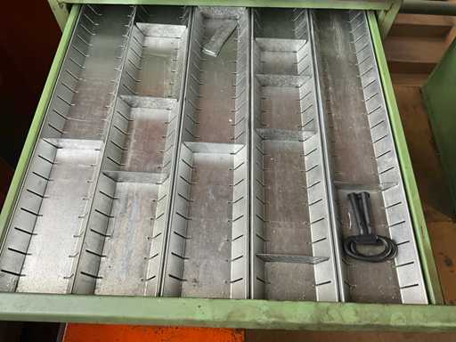 Cu 8 sertare, inclusiv conținutul rămas, greutate estimată aproximativ 60 kg, cheie disponibilă, vezi fotografii pentru mai multe detalii