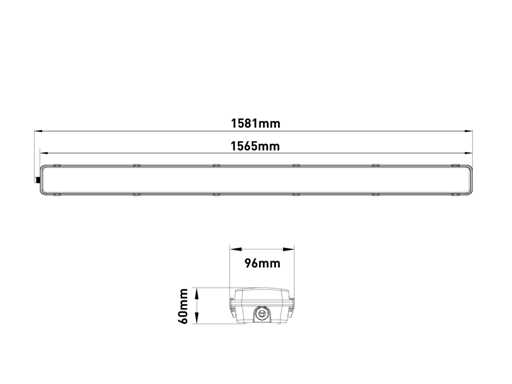 Etanșare IP65, culoarea produsului gri, dim. 1581 x 96 x 60 mm, material ABS și PS, set de montare inclus, două intrări T8 Tube, tub LED nu este inclus, tensiune 220-240V, conexiune L N pe o parte, sku 1068