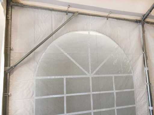 Culoare: ALB / Înălțime laterală 2,20m / tuburi 50mm grosime / Inclusiv întărire pentru acoperiș + cadru la sol