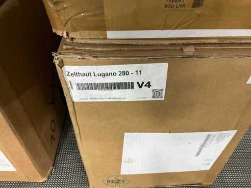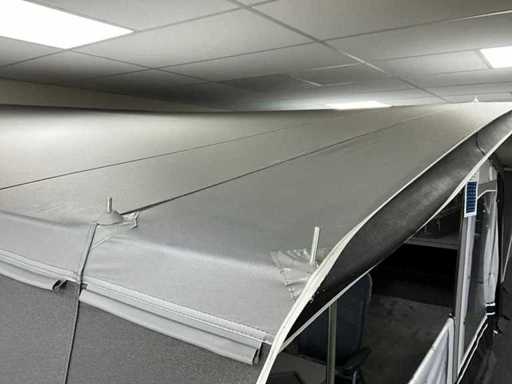 Fotografie pentru referință, cortul nefolosit în cutie. Circumferință: 11, 898-917 cm, 939-958 cm, adâncimea copertinei: 280 cm, materialul acoperișului: TenCate AllSeason 240 grame, materialul peretelui: TenCate Touring 180 grame, cadru: Oțel Ø 28x1 mm