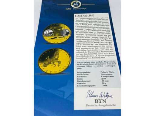 Cupru placat cu aur și argint – medalie comemorativă Luxemburg cu modele europene, diametru de 40 mm.