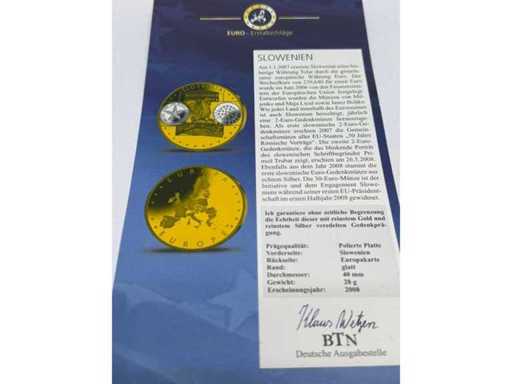 Cupru placat cu aur și argint – medalie comemorativă Slovenia Euro pattern, diametru 40 mm.