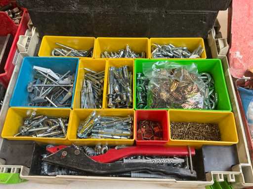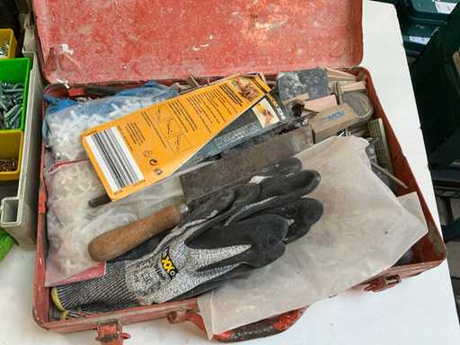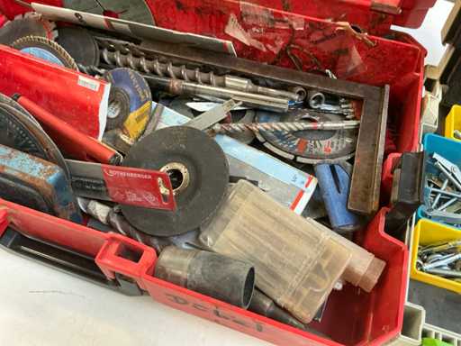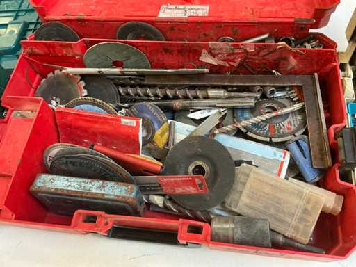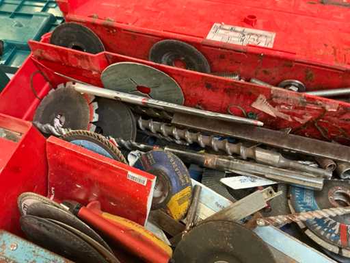 diverse conținuturi, inclusiv burghie, roți de șlefuit, unelte manuale, elemente de prindere, ....