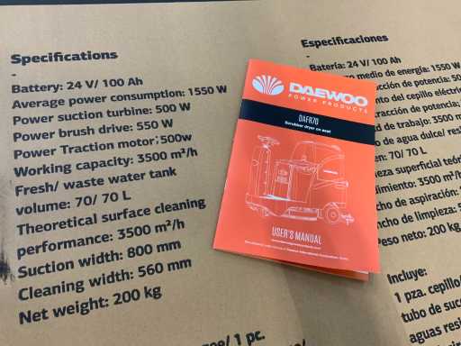 Neutilizat, capacitate de lucru 3500m2/h, motor cu perie 24V - 500W, viteză maximă 5-5,5km/h, rezervor de soluție 70 litri, rezervor de stocare 70 litri, diametrul ghidonului 1980mm, nivel de presiune 65 db
