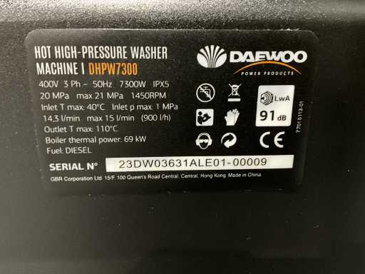Daewoo - 2025 - DHPW 7300 diesel cu apă caldă - Aparat de spălat cu presiune