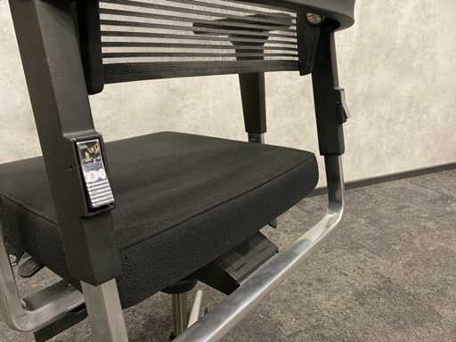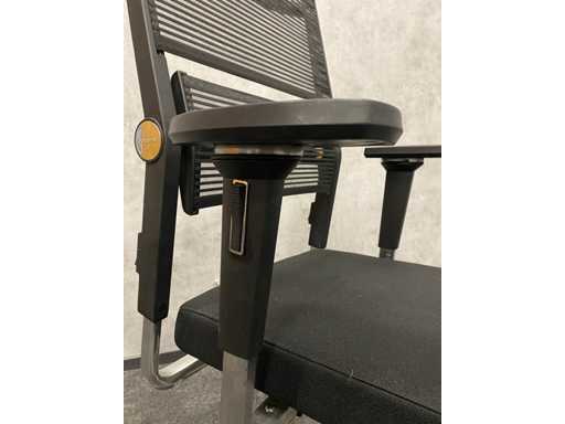 echipat cu cotiere reglabile 4D, înălțimea scaunului și adâncimea scaunului reglabile, spătar înalt (înălțimea spătarului de la scaun 85 cm), mecanism de înclinare, înălțimea spătarului reglabilă, capac de spătar din țesătură