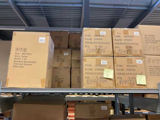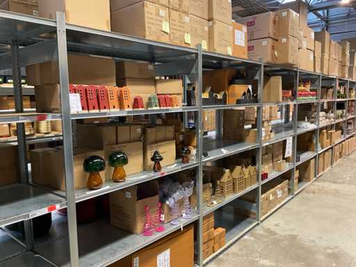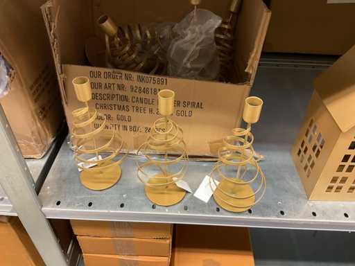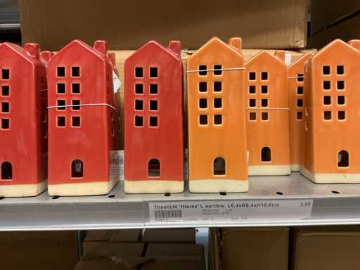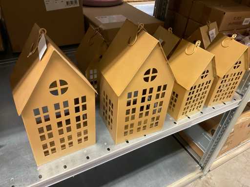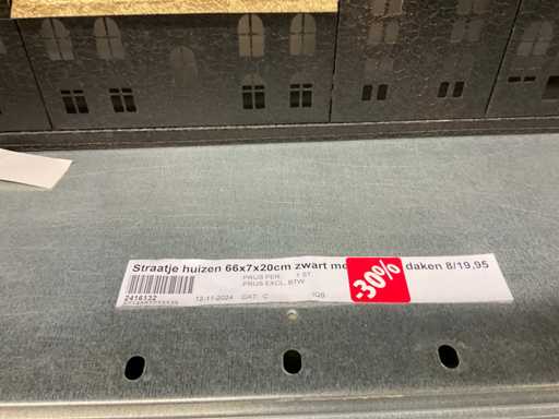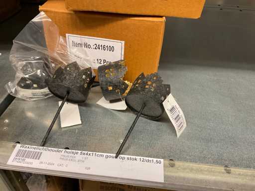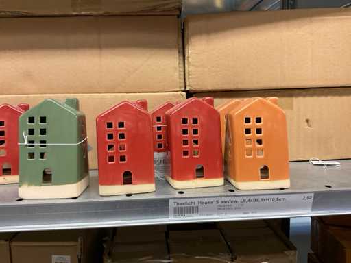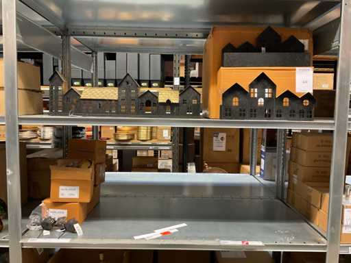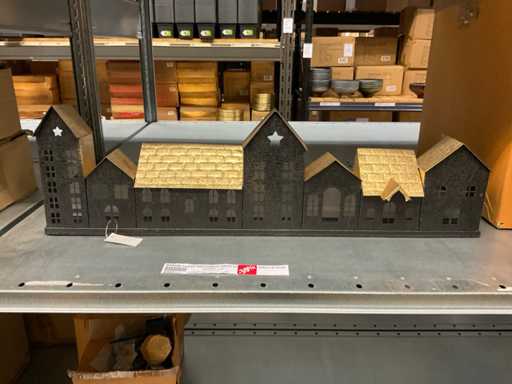 Constând din case stradale, suport pentru lumânări, suport pentru lumânări, lumină de ceai, ciupercă de sticlă, toate în 2 secțiuni de rafturi.