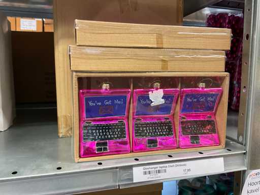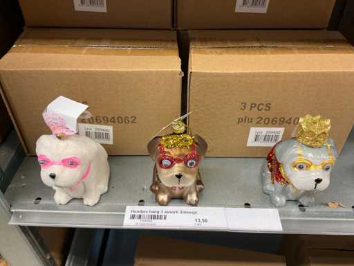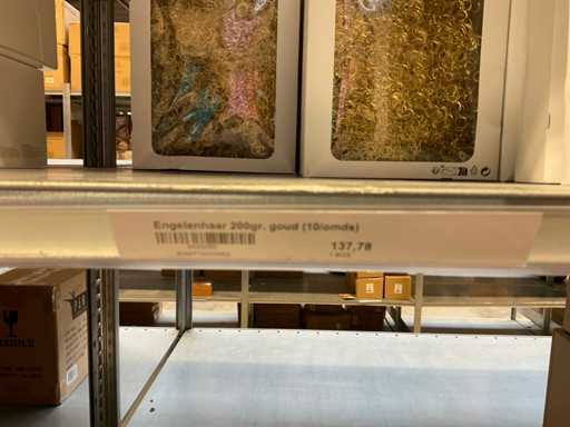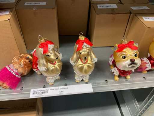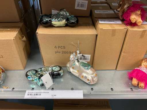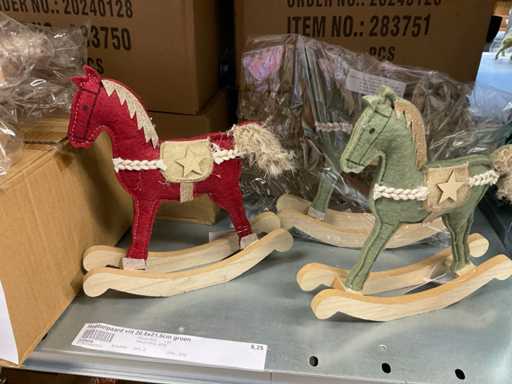 Constând din ornamente, păr de înger și miniatură de cal balansoar, toate în 1 secțiune de raft.