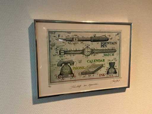 Diverse decorațiuni de perete semnate în rame, realizate de diverși artiști. Dimensiuni: 38x27cm (3x), 31x41cm (2x), 49x61cm (1x), 70x50cm (1x)
