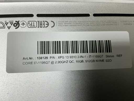 Laptops, Inkoop + 98.31, XPS 13 9310 2-in-1, CPU: Intel Core i7-1165G7 @2.80GHz, MEM: 16GB, SSD: 512GB NVME SSD, small white spots bottom left corner, no adapter ( cleaned and tested ) [ID: 138129]