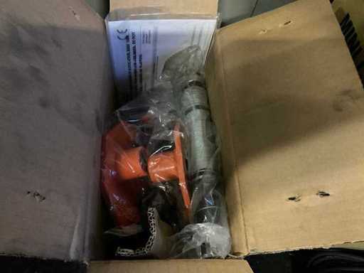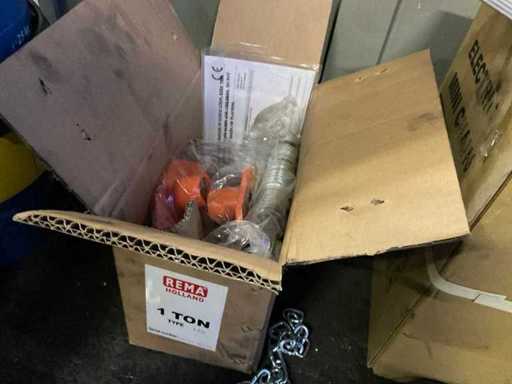 Constând dintr-un troliu cu lanț nefolosit cu cutie și un cărucior Rema de 1 tonă nou în cutie